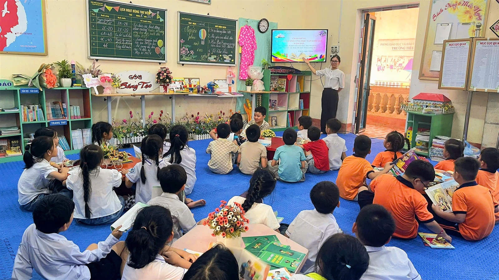 - Trang trí lớp học, luân chuyển sách; giới thiệu sách, tài liệu, video về gương sáng tự học, các thành tựu khoa học - công nghệ mới trong các buổi học sinh đọc sách tại phòng thư viện.